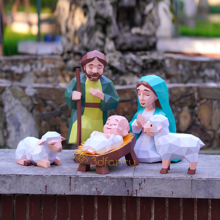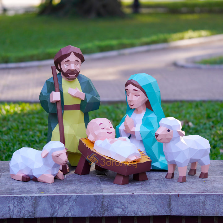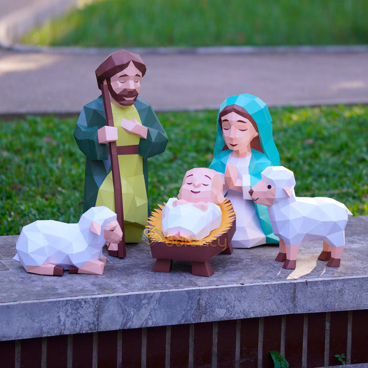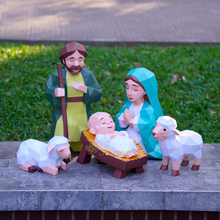 Nativity Scene Papercraft 3D SVG Bundle – Virgin Mary, Saint Joseph, Baby Jesus & Sheep | Christmas DIY Ornament | Svg PDF Studio Cut Files