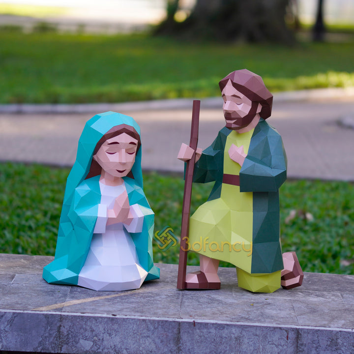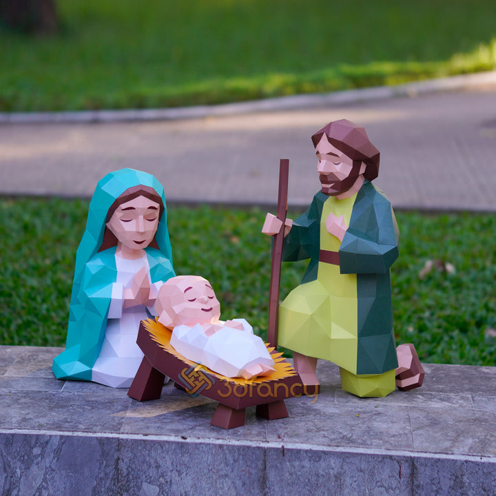 This is Nativity Scene Papercraft 3D SVG Bundle – Virgin Mary, Saint Joseph, Baby Jesus & Sheep | Christmas DIY Ornament | Svg PDF Studio Cut Files