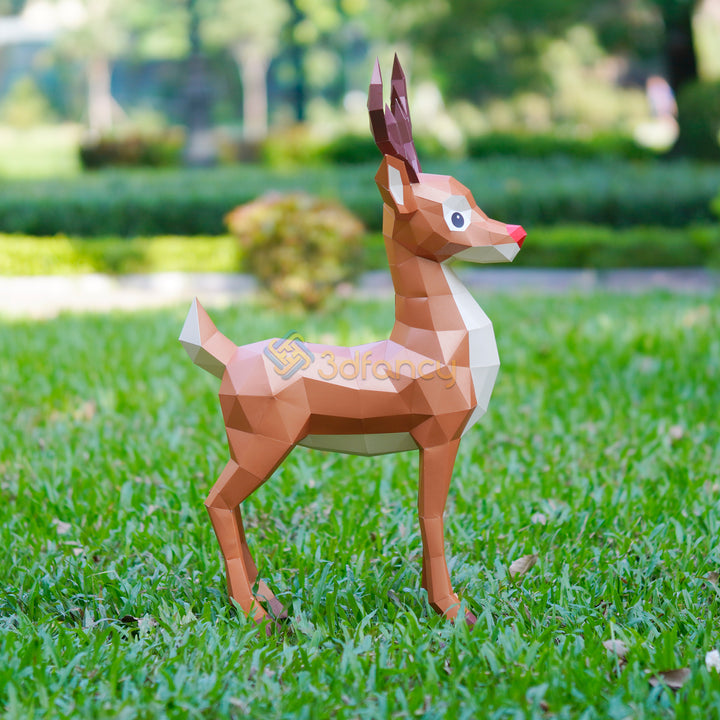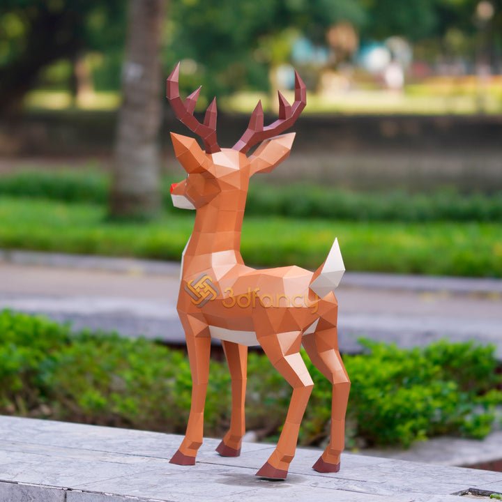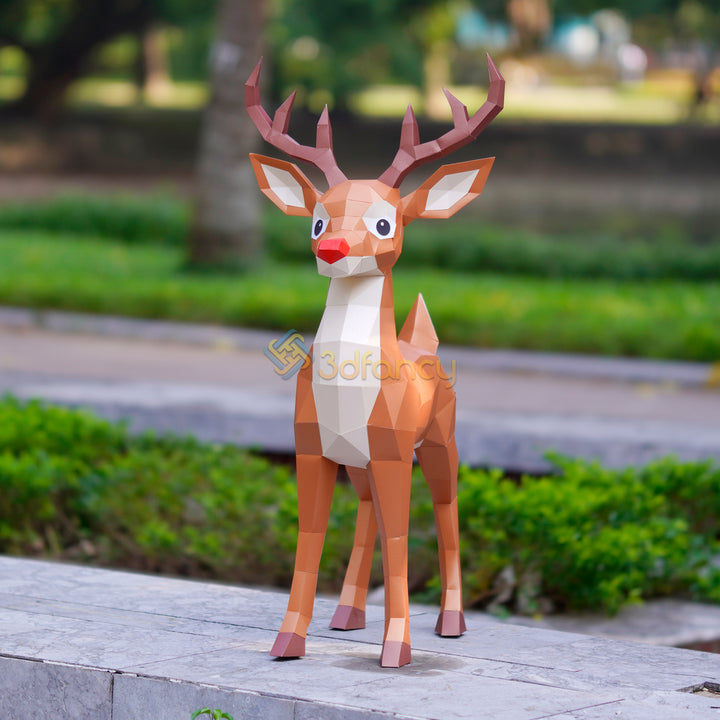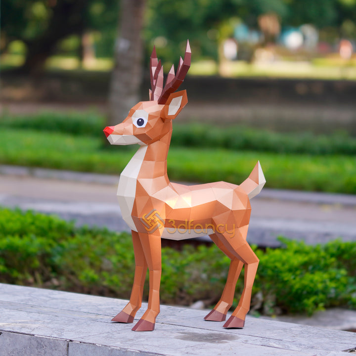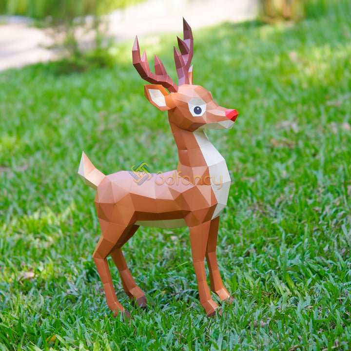 Reindeer Papercraft Template – 3D Cute Rudolph Christmas Decoration 2025 | DIY Paper Model Ornament | SVG for Cricut | Printable PDF Files
