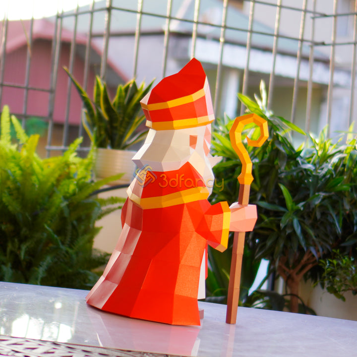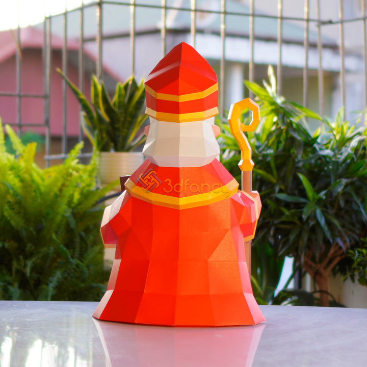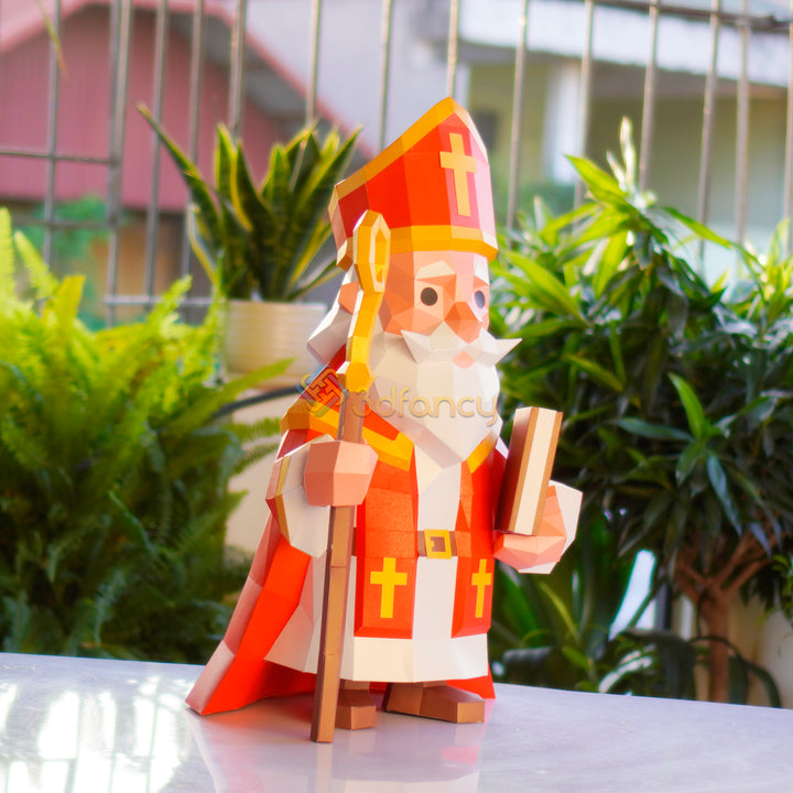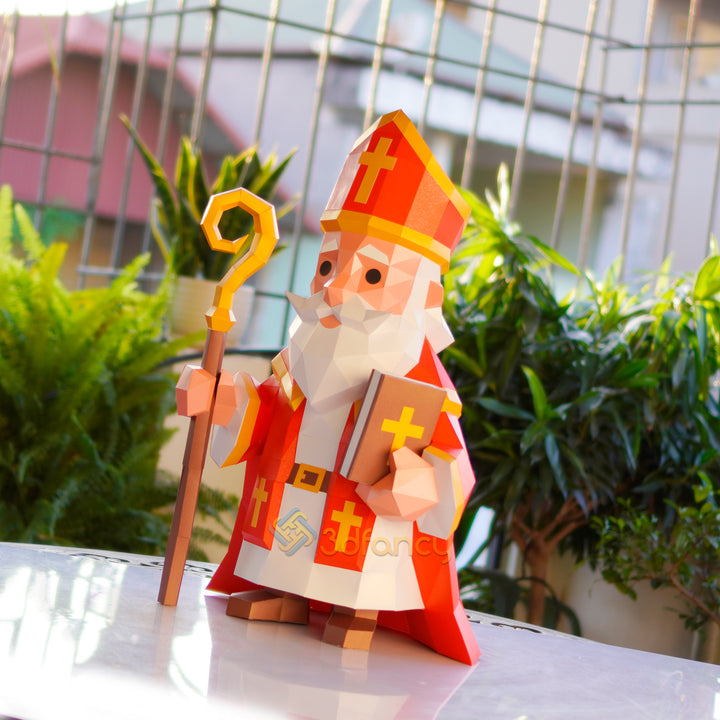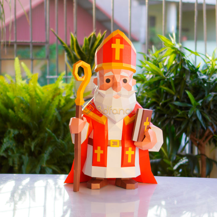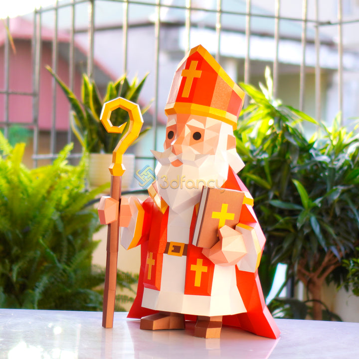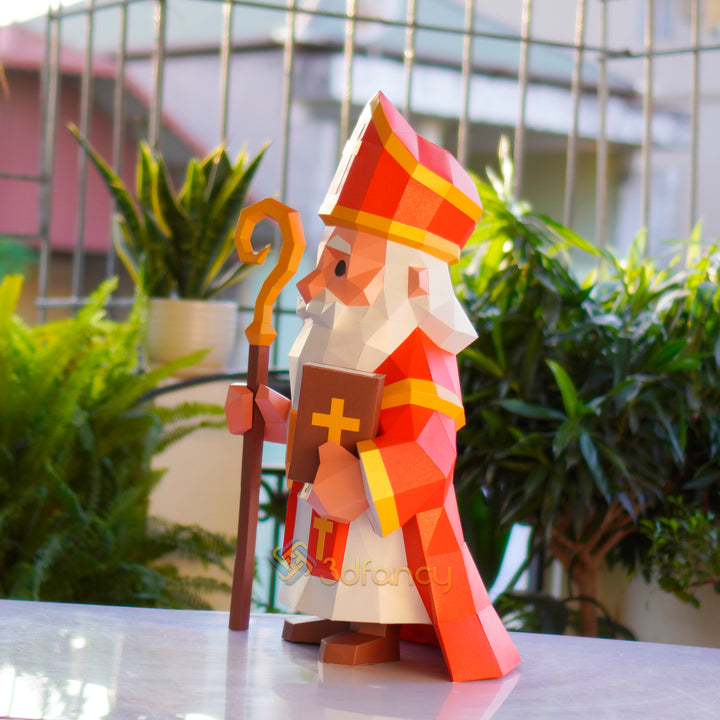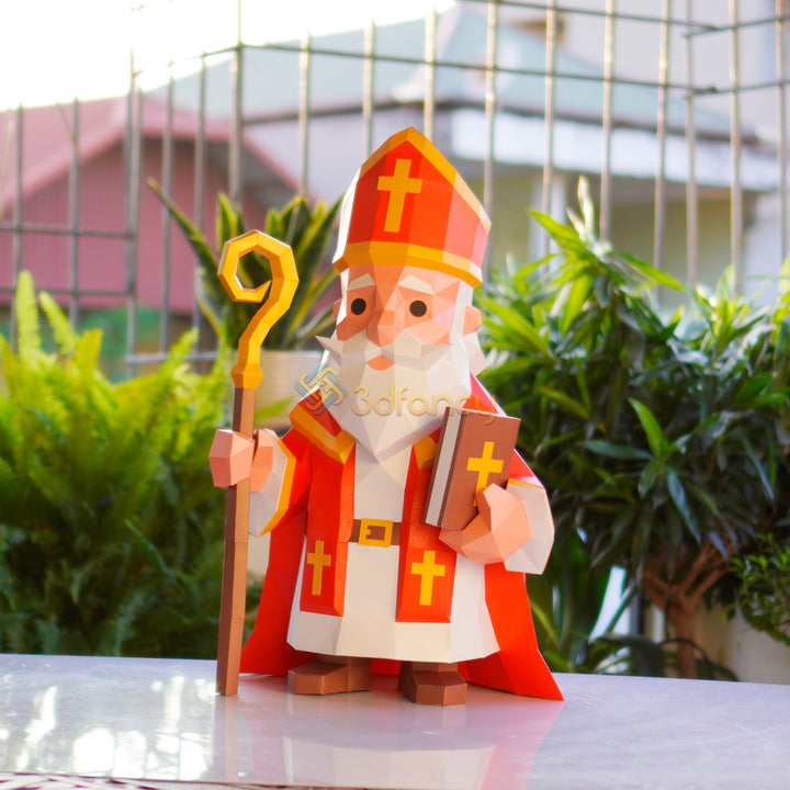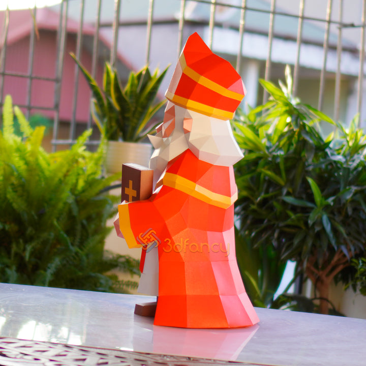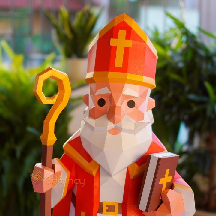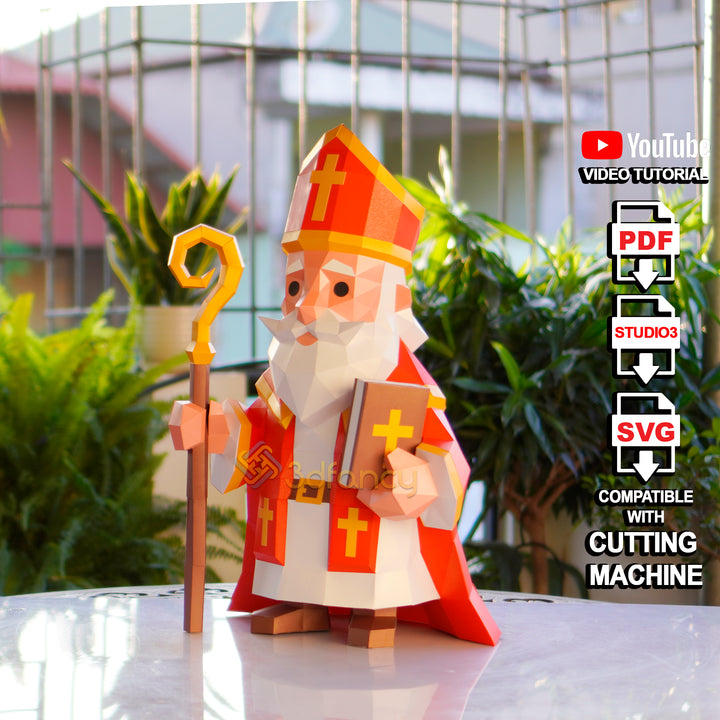 Saint Nicholas Papercraft Template | DIY Low-Poly Saint Nick 3D Paper Model | SVG PDF Studio Files