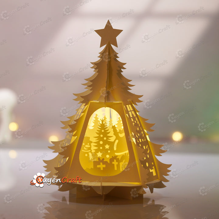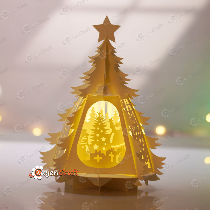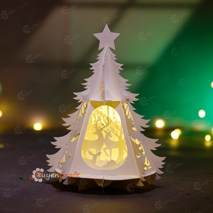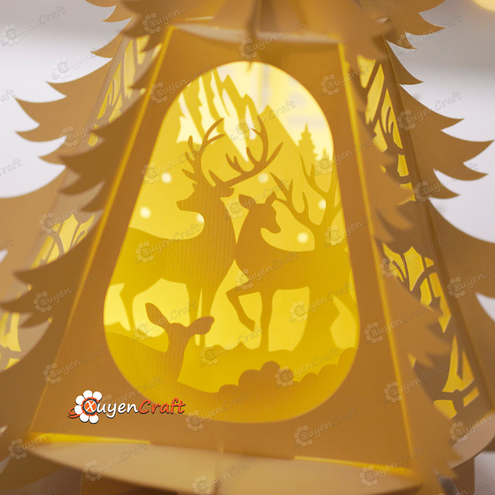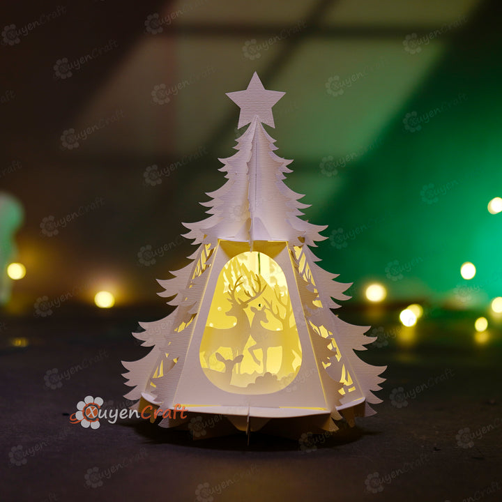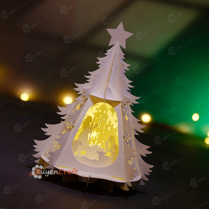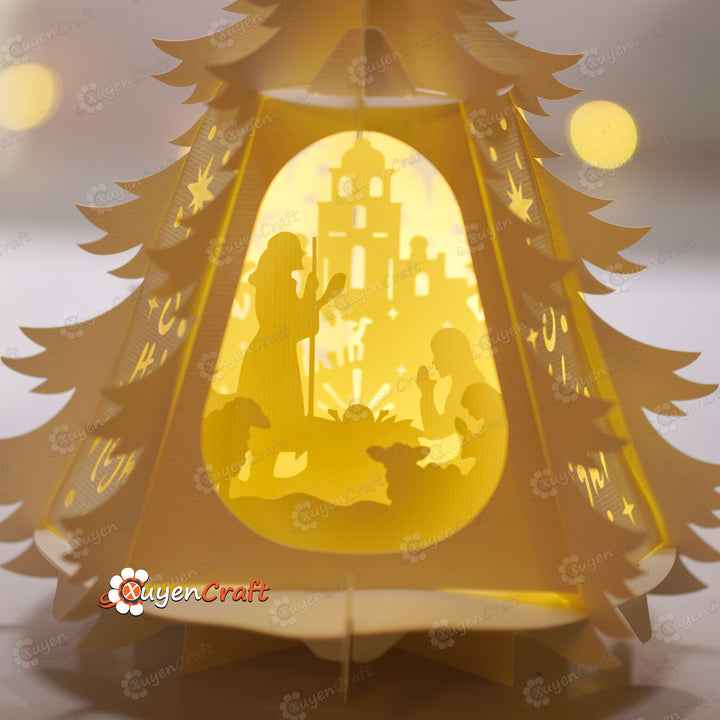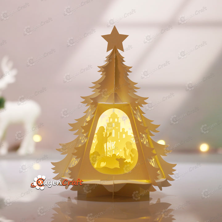 Set 3 Christmas Tree Lantern Templates 2025 | Nativity Scene, Santa, Snowman & Deer Paper Cut Light | SVG PDF Files are copyright by XuyenCraft and are for personal use only!